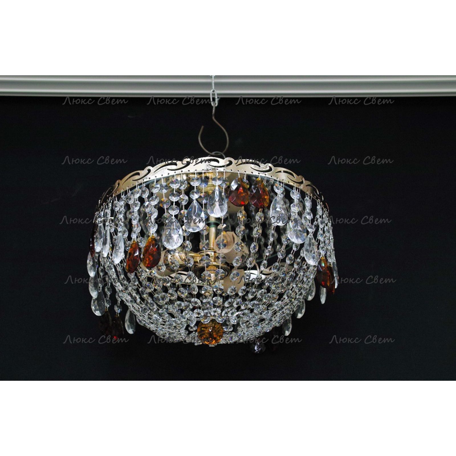 Люстра подходит для натяжных потолков. Крепление - потолочный крюк.