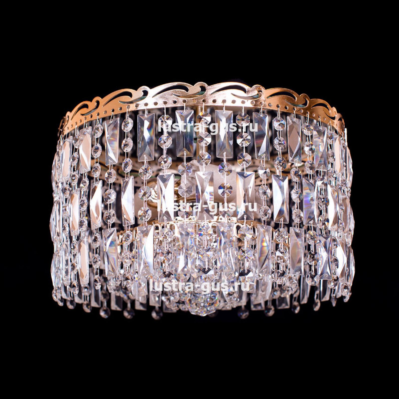 Потолочная люстра Анжелика 3 лампы + низ № 3 от российского производителя светильников Гусь-Хрустальный идеально подойдет для освещения зала, гостиной, спальни. Люстра выполнена в классическом стиле с изящными хрустальными подвесками. Арматура светильника выполнена из металла, цоколь - E27. Цвет арматуры - золотой или серебристый, на выбор. В основании люстры расположено зеркало, которое отражает свет и усиливает освещенность комнаты.
