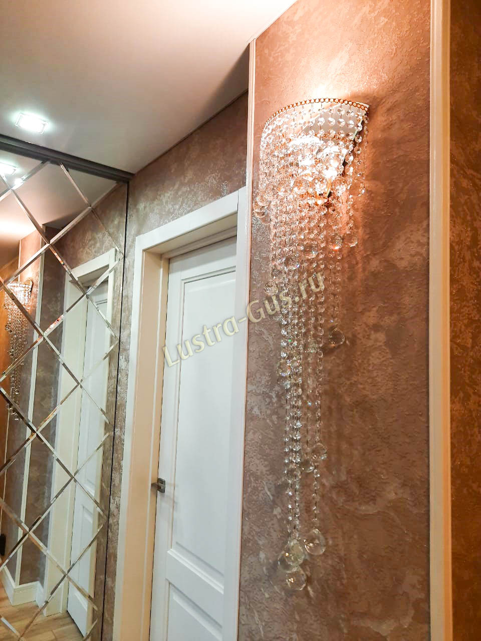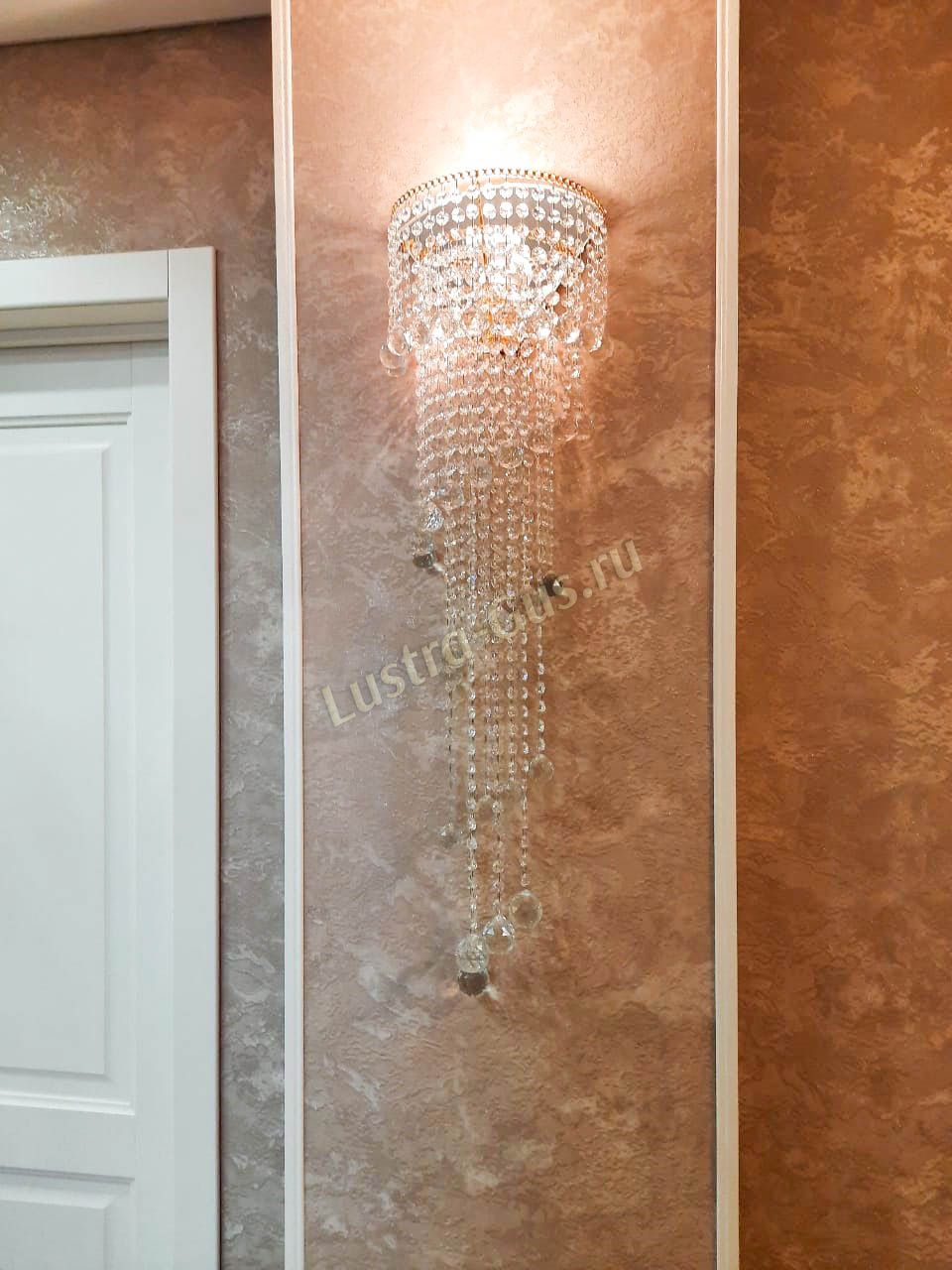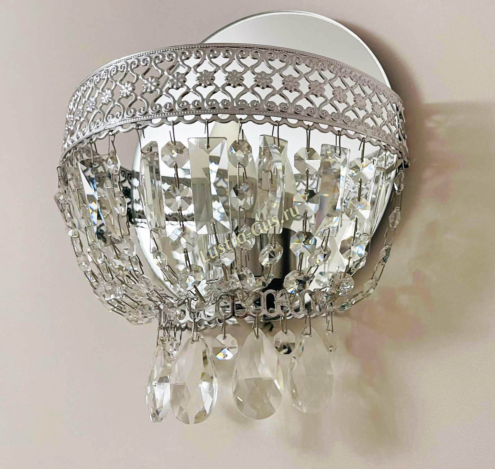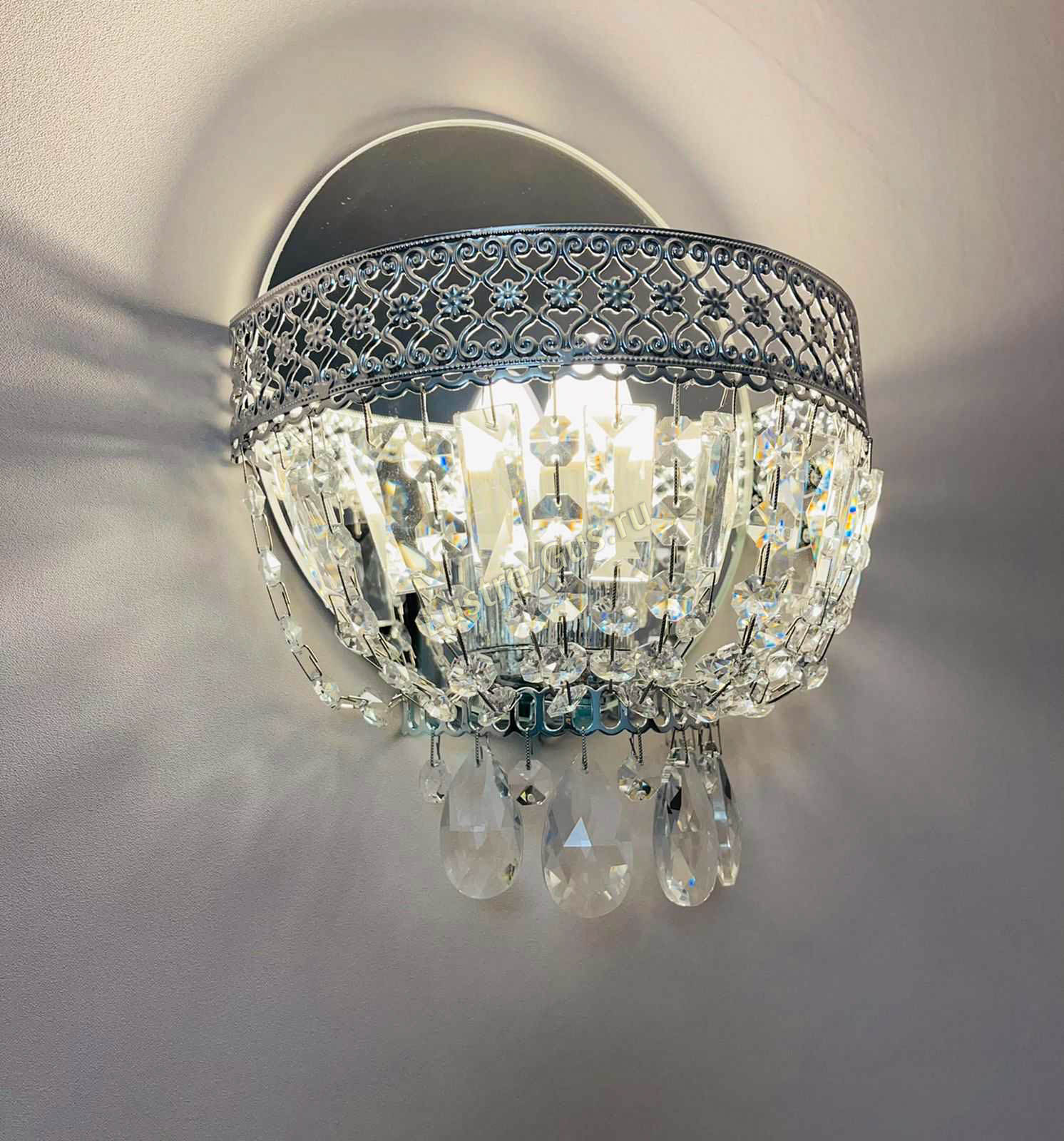 Бра вписалось в интерьер, хрусталик сверкает. На стене - узорчатая светотень. Как раз то, что было нужно в комплект к купленной ранее люстре.
