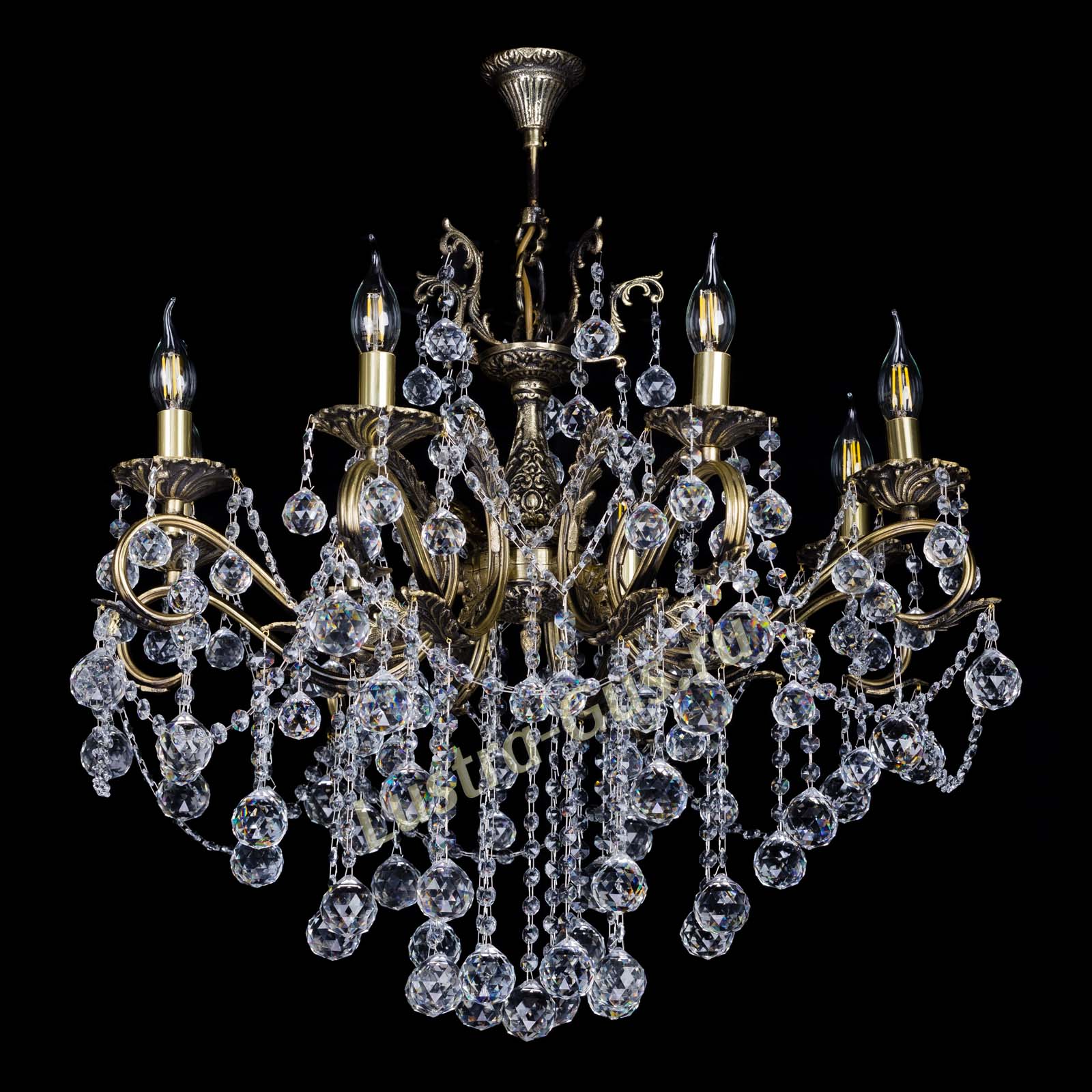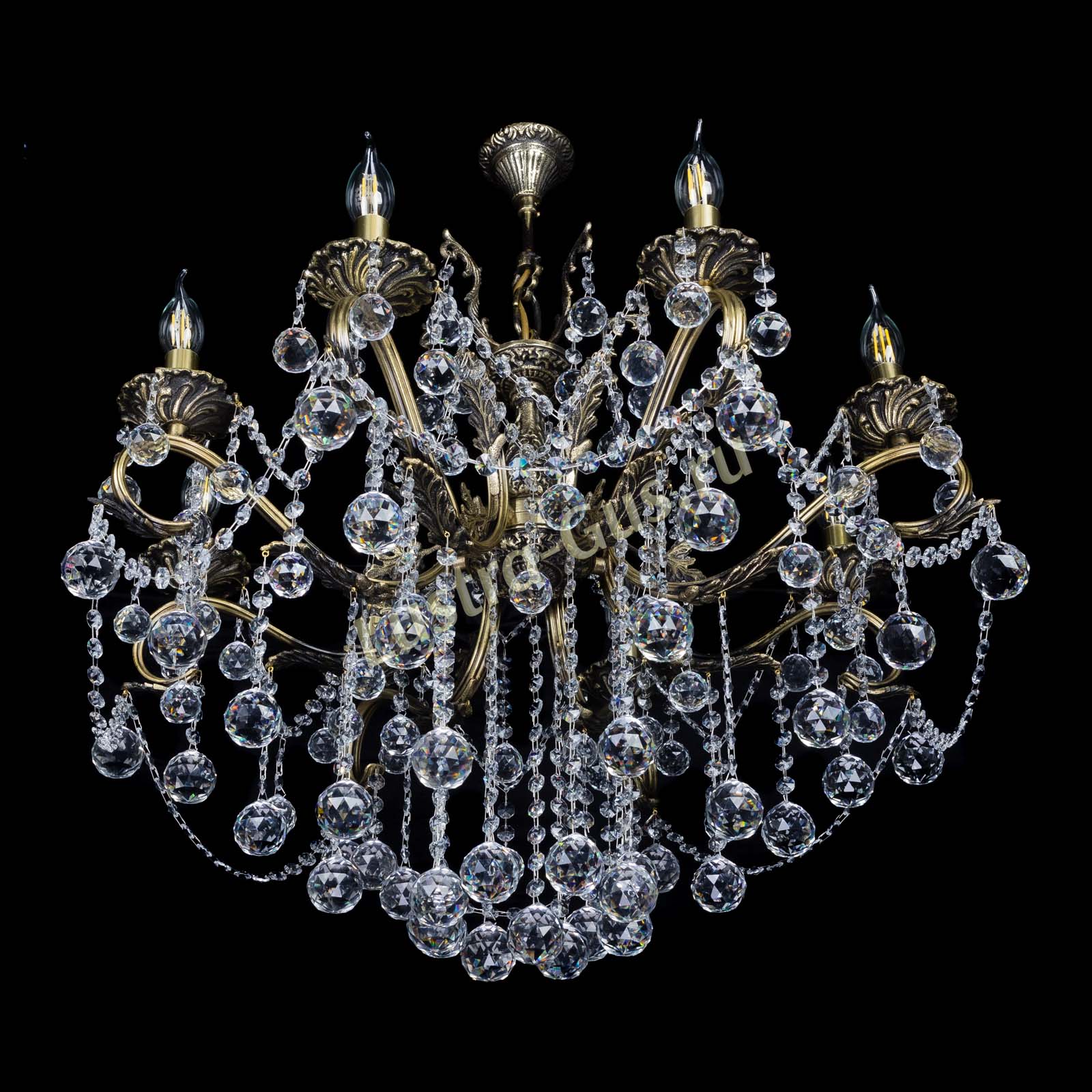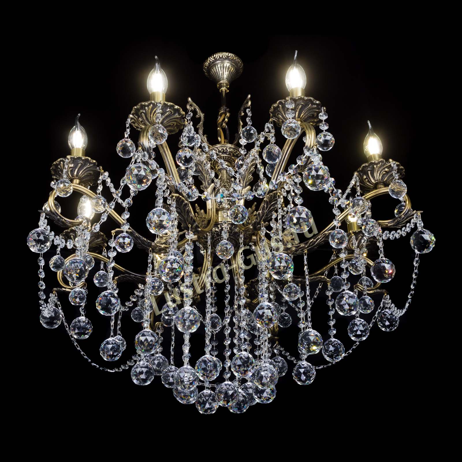 Бронзовая люстра Мелания №8/2 шар производства Гусь-Хрустальный арт. 983808ш, потолочный крюк, .