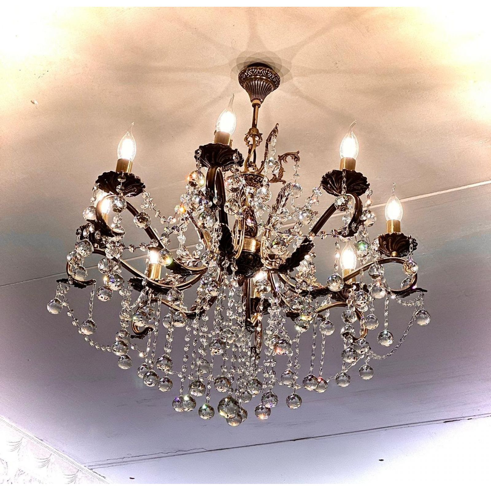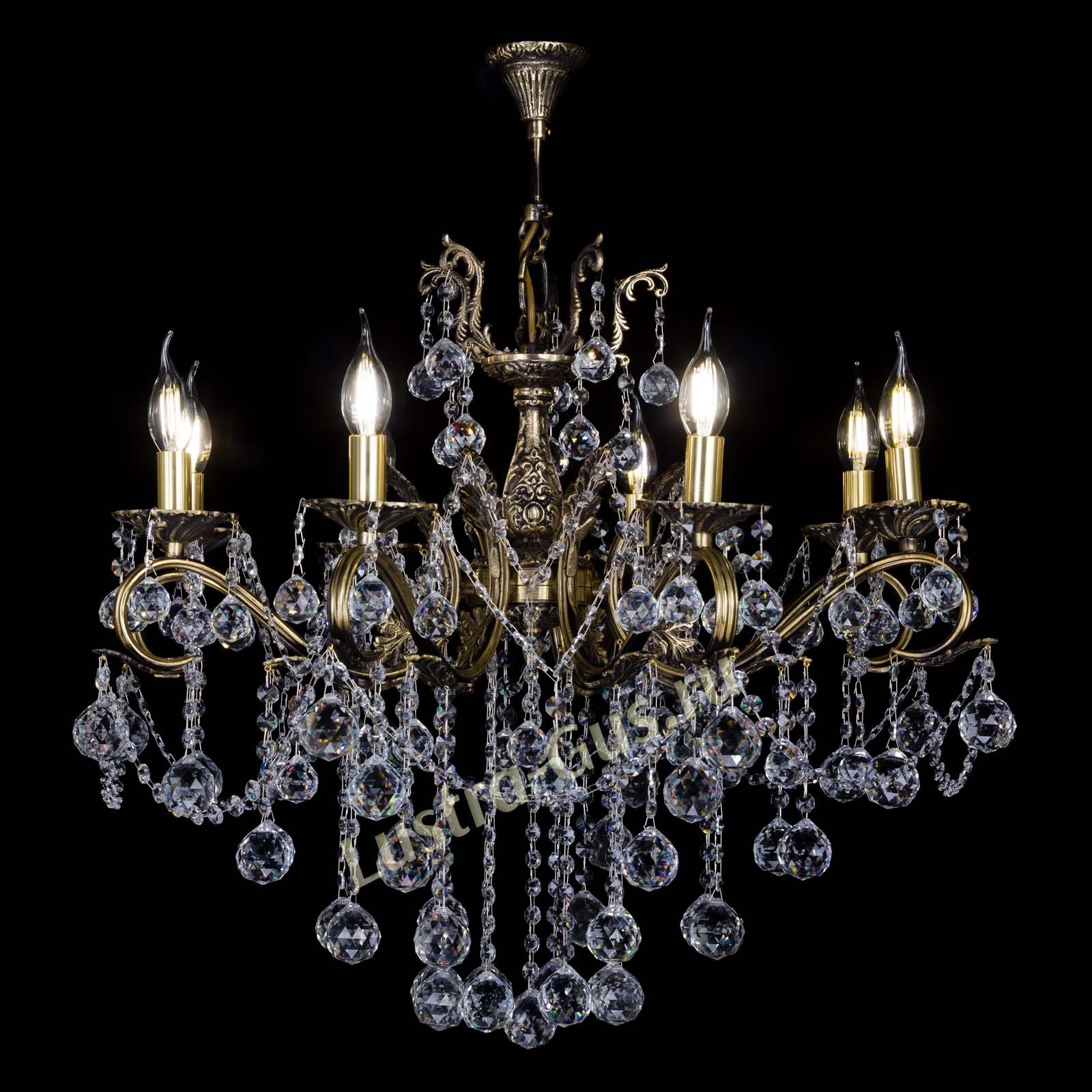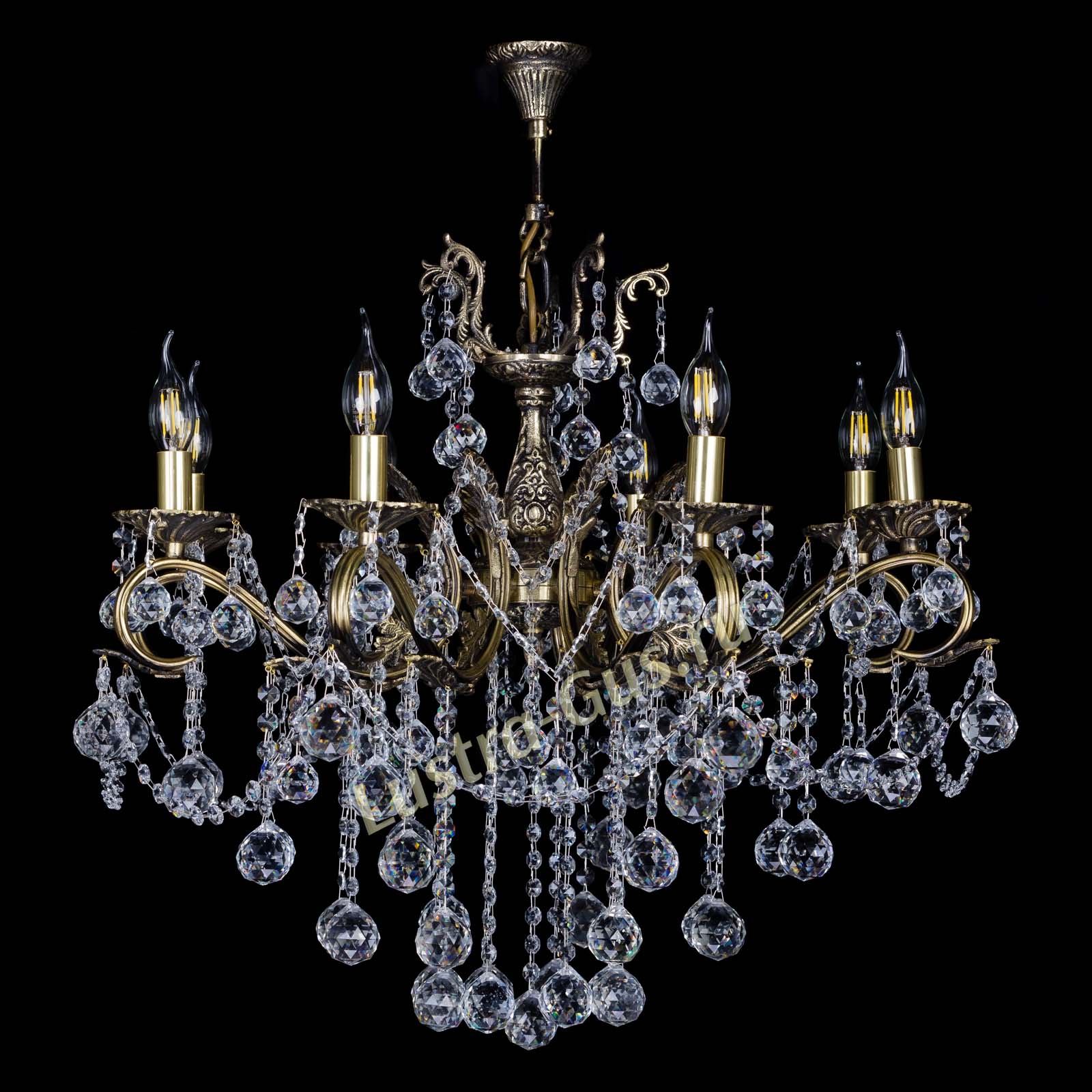 Бронзовая люстра Мелания №8/2 шар производства Гусь-Хрустальный арт. 983808ш, потолочный крюк, .