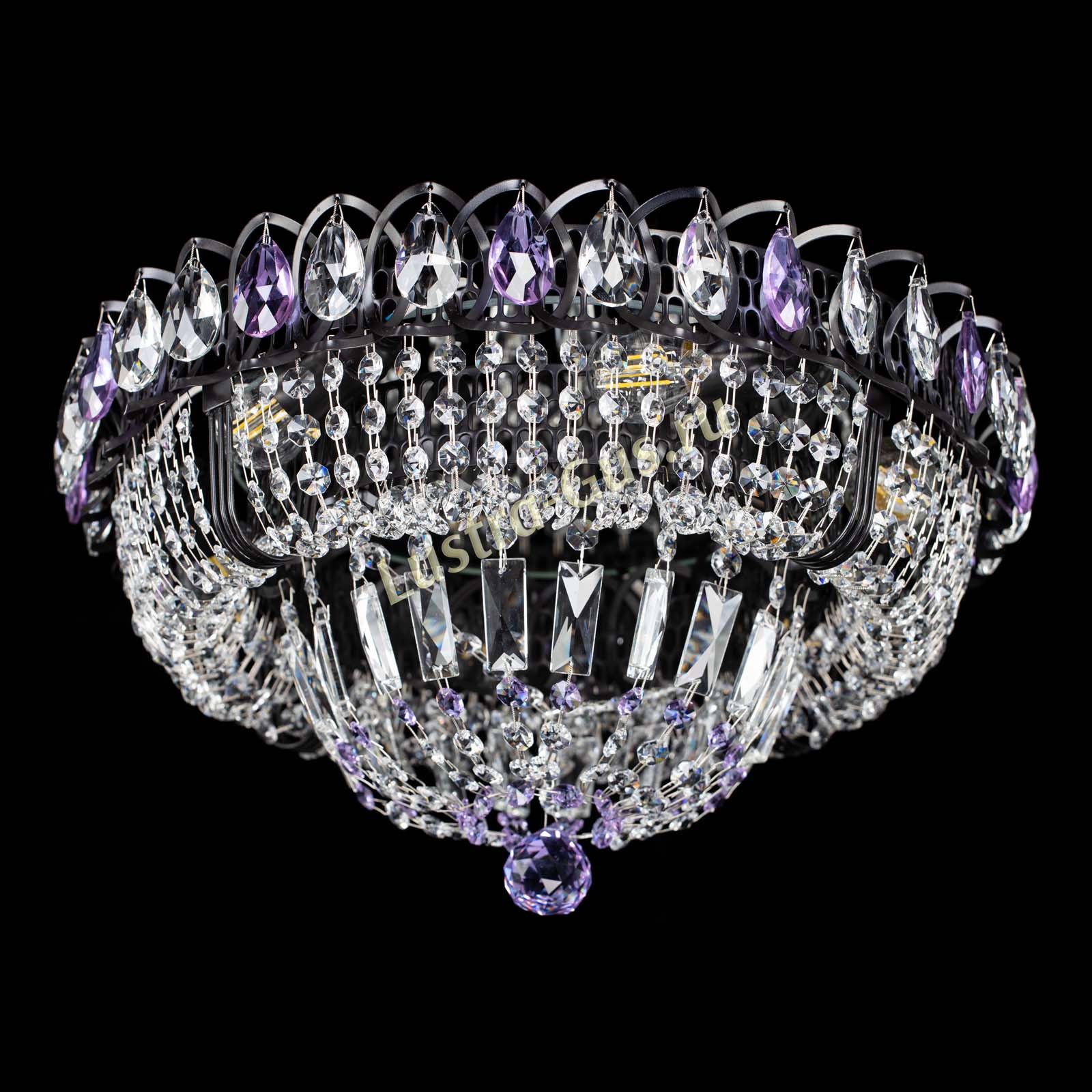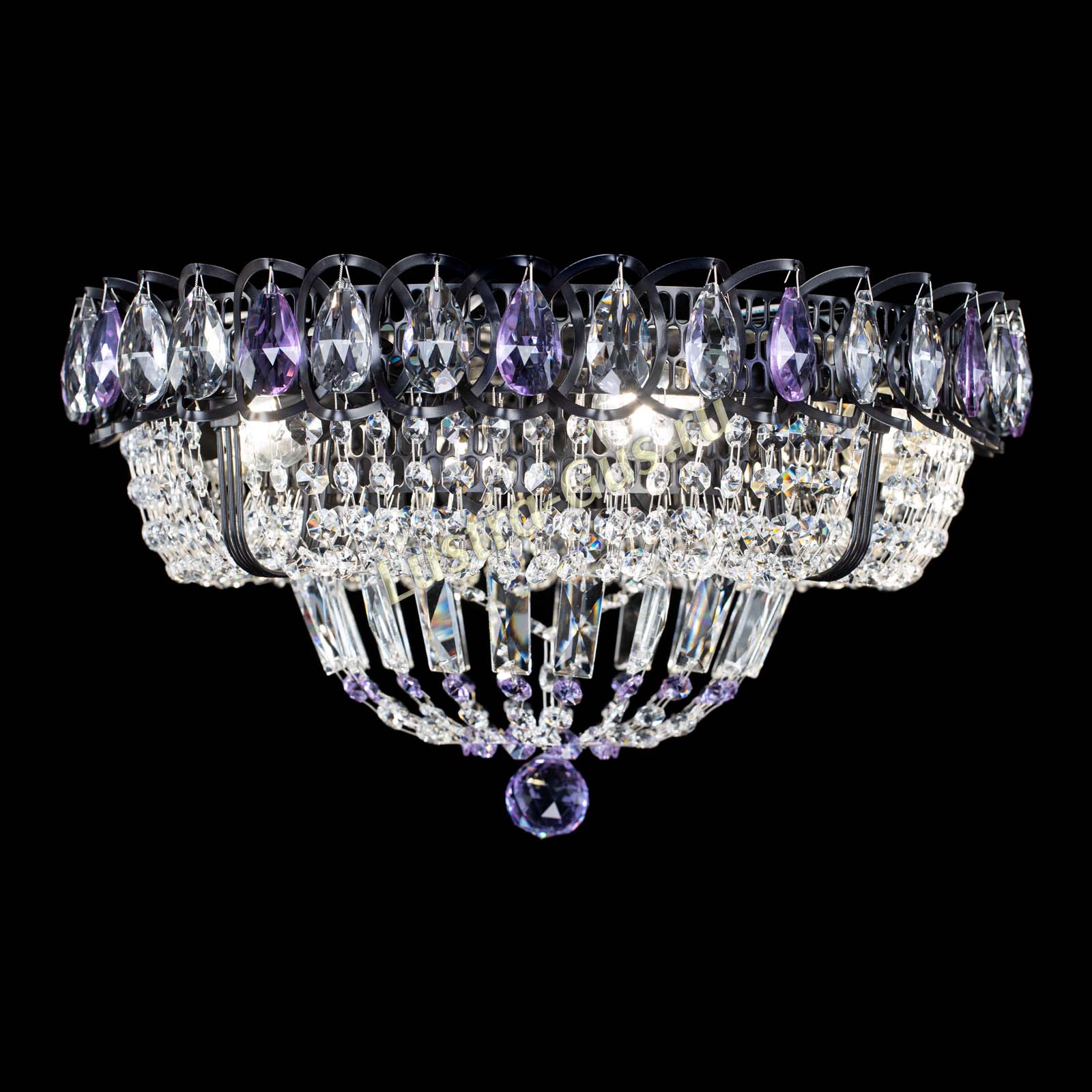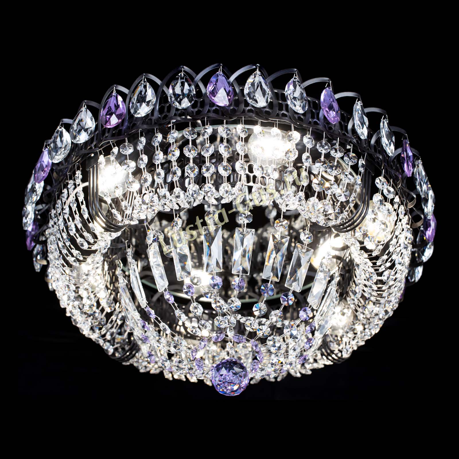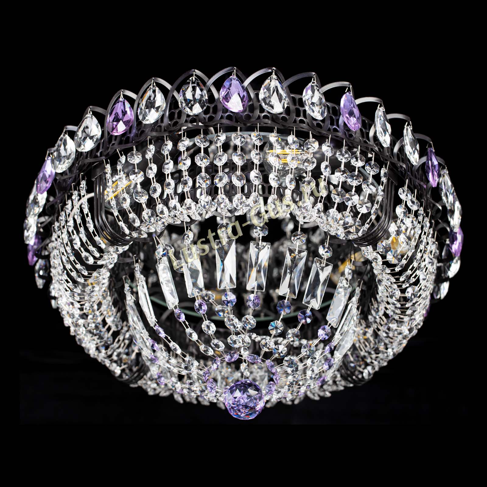Люстра Кольцо Классика Черная с фиолетовыми подвесками в Кирове