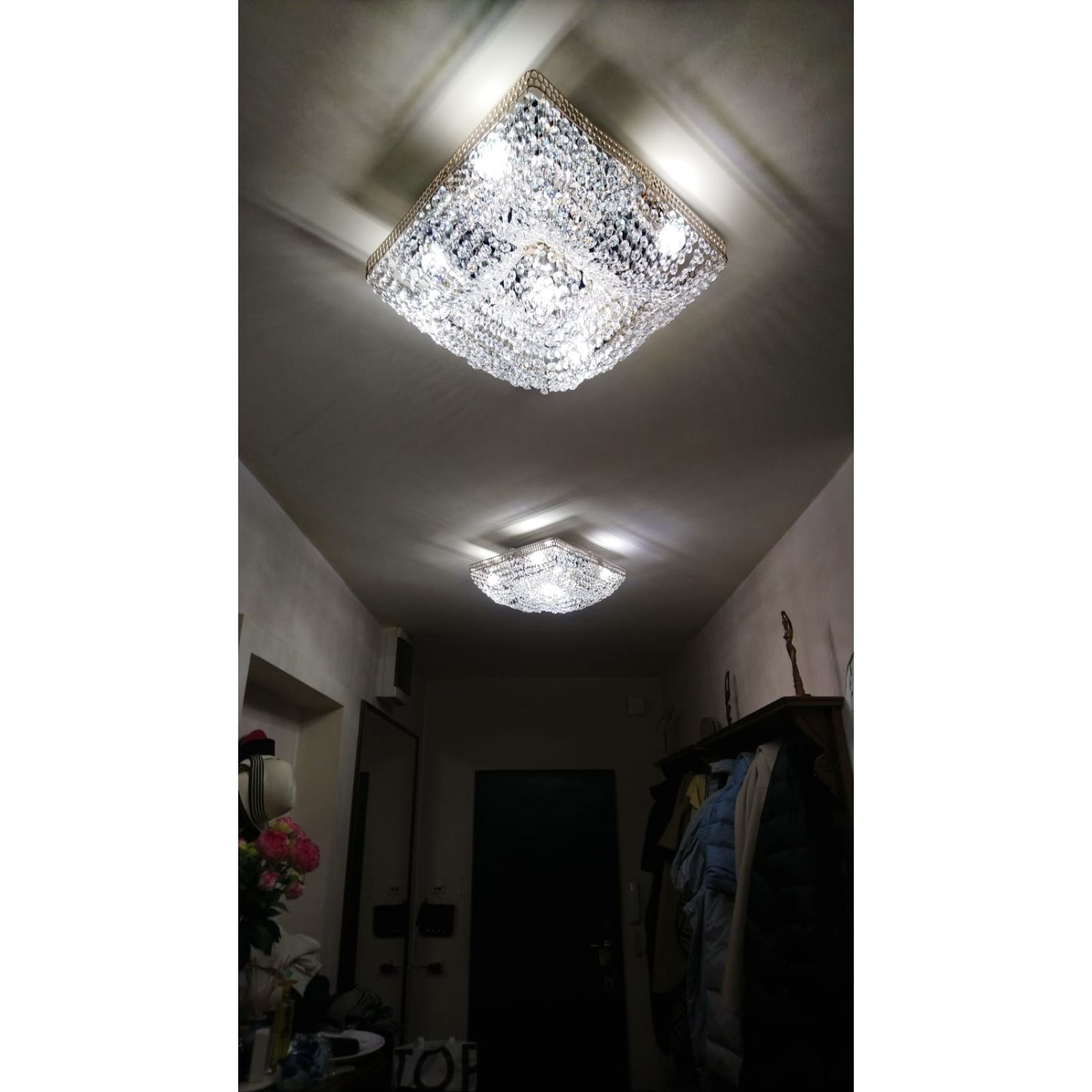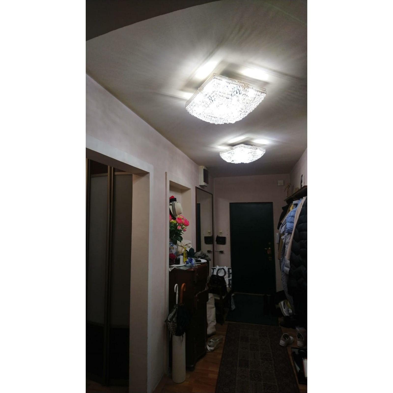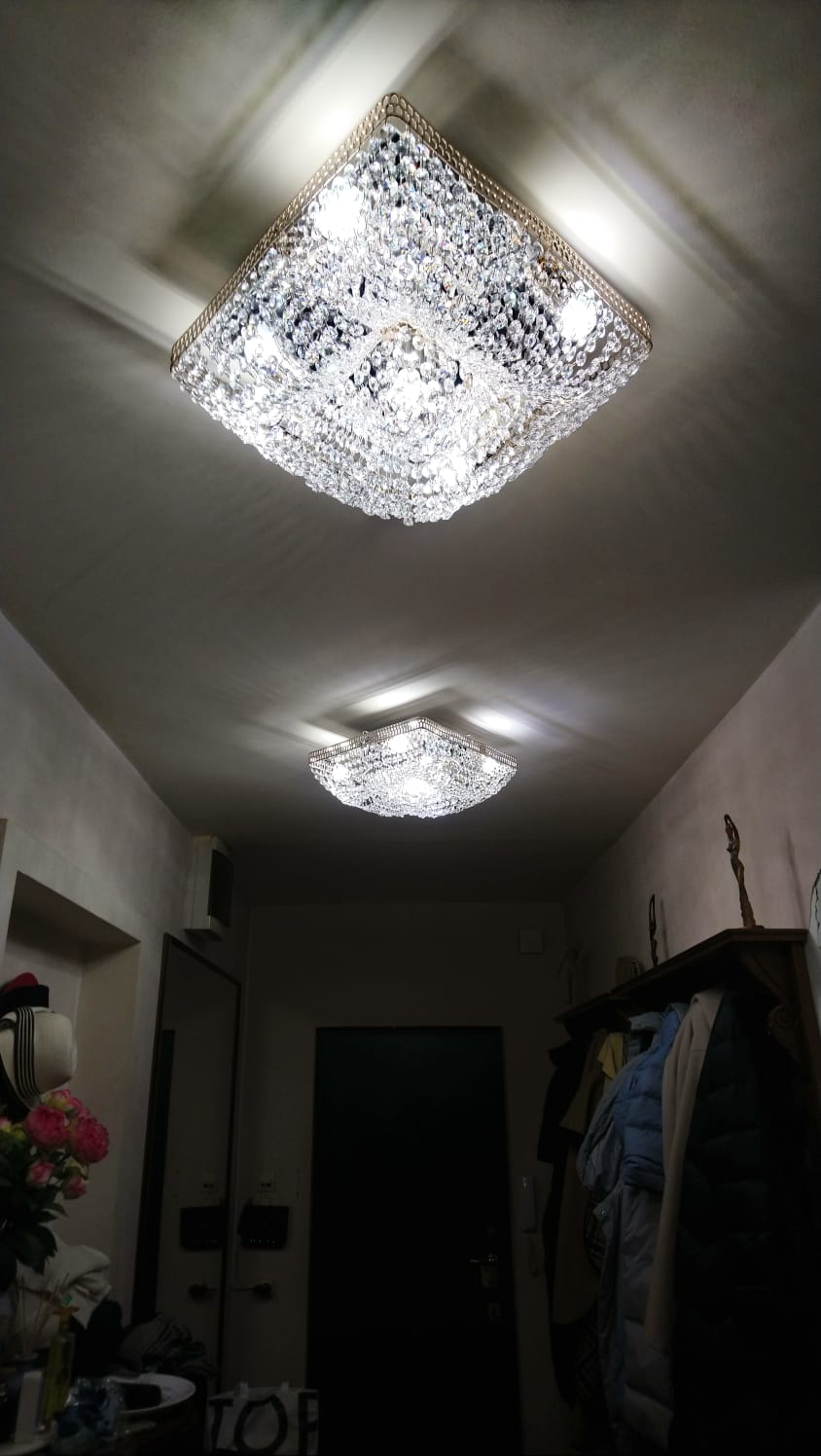 Люстра доставили быстро. Заказали комплект для коридора. Всё приехало в отличном состоянии. Цена просто супер. Хрусталь красиво переливается.