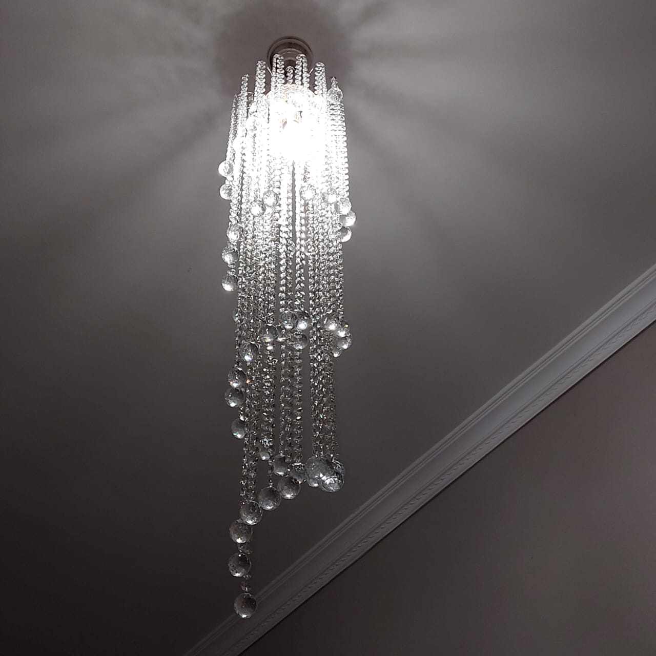Люстра восхитительна! Не громоздкая, не маленькая, нежная и воздушная. Но при этом роскошная! Хрусталь "вечен" и придает даже простому интерьеру "дорогой" вид. Любуемся каждый день! Спасибо)